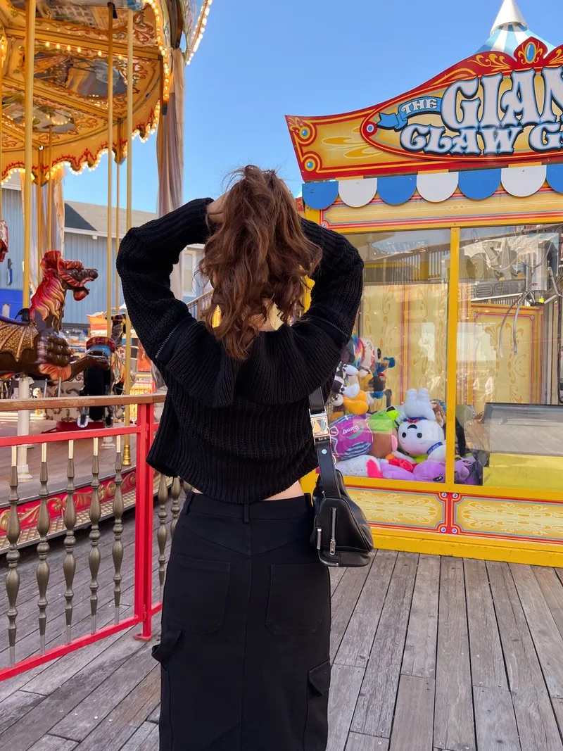 拉鍊可以全拉起來變成高領毛衣的穿法, 冬天穿出門就可以少帶一條圍巾了.