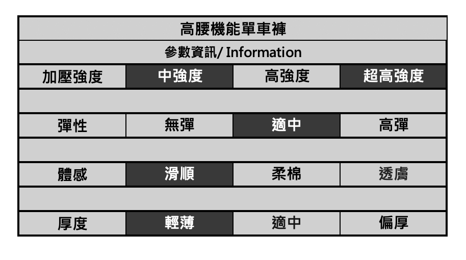 全方位高腰設計:超高腰加壓設計,以超高強度加壓瞬間收平小腹贅肉與胃凸問題,塑造優雅纖細的腰線。