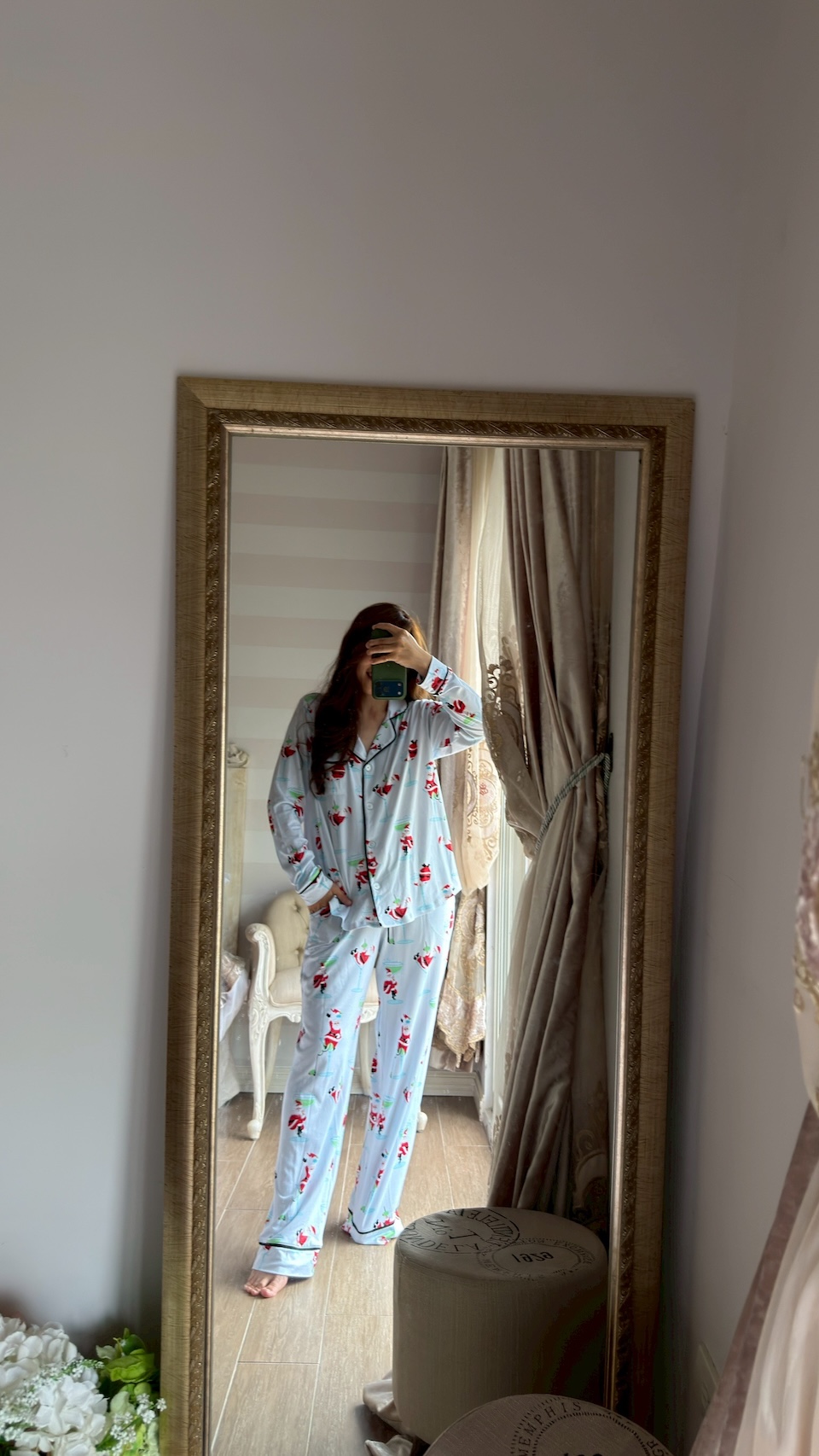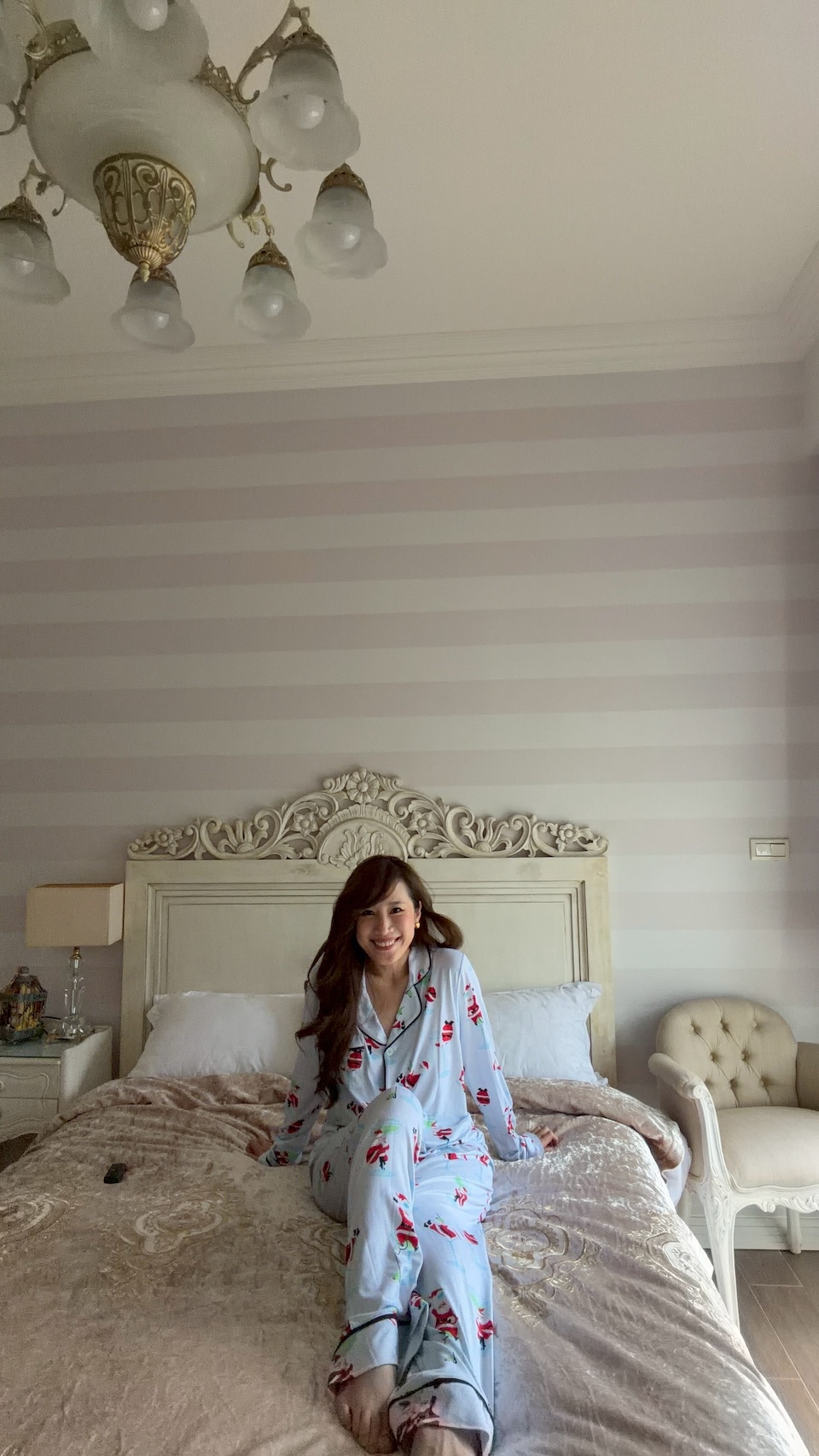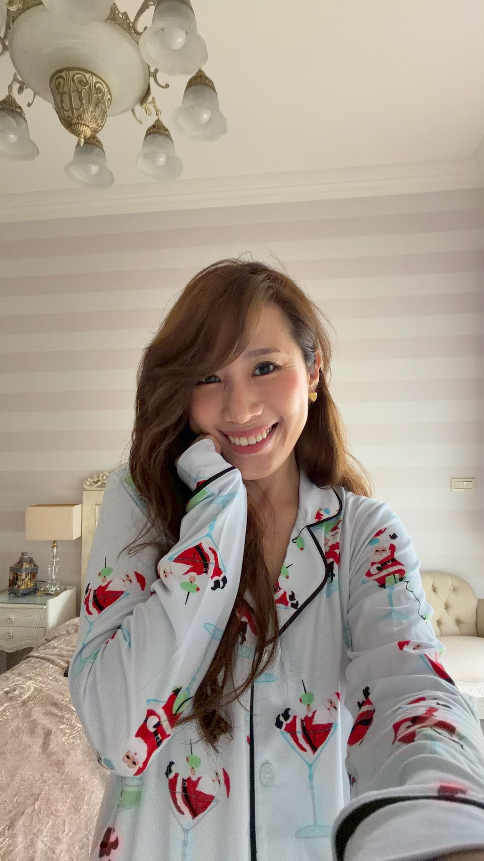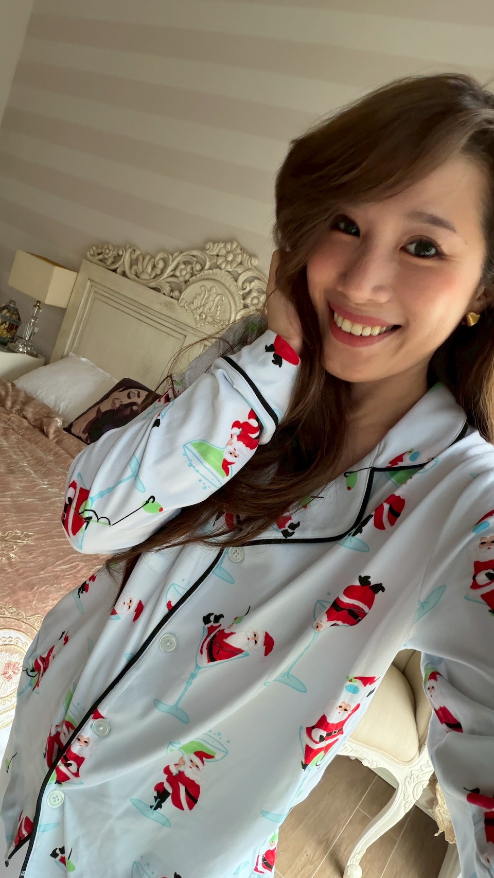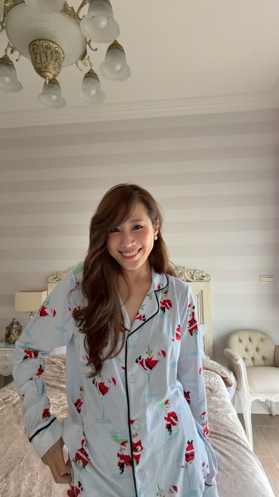 版型是溫柔的襯衫領+微鬆直筒長褲,穿起來顯瘦、氣質又節慶感十足,是一年到頭都會想拿出來穿的「快樂睡衣」。