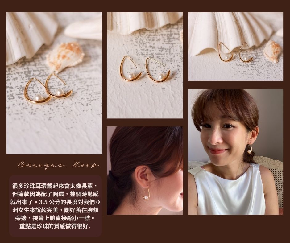 如果妳也在尋找一對「有氣場卻不老氣」的珍珠耳環,那這款 Baroque Hoop 非常推薦給妳。我們特別挑選了帶有自然生長紋理感的巴洛克造型珍珠,那種不規則的圓潤感,將它鑲嵌在圓潤流暢的金屬耳環上,不僅呈現出充滿力量卻不失柔美的現代美學,更有一種不經意的法式高級感 。在耳際輕輕晃動的樣子,有一種不經意的慵懶與自信。這不是那種只能配洋裝的乖乖牌珍珠,它搭起西裝外套或簡單的針織衫,也能撐出一種很有層次的「Quiet Luxury」的低調質感。