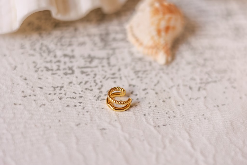 採取專櫃等級的厚鍍金程序,並經過多道精細的拋光打磨,藉此呈現出輕珠寶等級的細膩手感。 (18K 金鍍層確保了色澤的持久性與抗敏性,與精品品牌的製作標準看齊。高品質的材料選擇讓這份優雅能夠陪伴妳很久很久:)