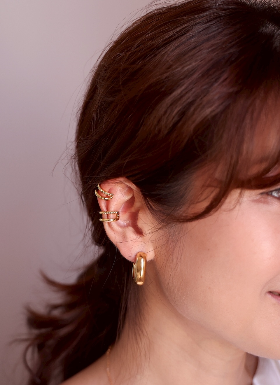 我們一直在找一款「存在得剛剛好」的耳扣。這款 Clean Clip 只有 1 公分的精緻直徑,卻擁有極佳的質感。它最迷人的地方在於那種「極簡的純粹」和「層次靈魂」,單獨配戴時顯得俐落有個性,與其他耳環疊搭時則能完美增加層次感 。不論妳有沒有耳洞,它都能輕輕地扣在妳的耳廓上,不經意的小心機。這是一款懂妳日常、能陪妳在極簡中穿出質感的必備單品