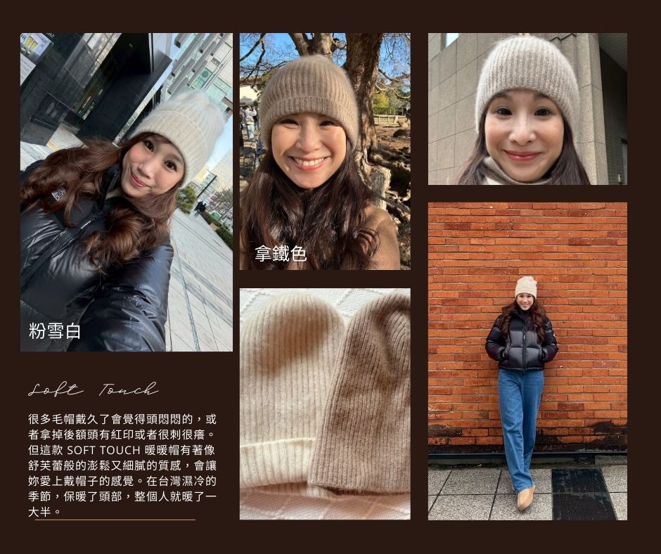 極致的溫柔全然包覆。這組是限量的帽子和圍巾組合,將 Cozy Cloud 大圍巾 的份量感與 Soft Touch 暖暖帽輕盈完美結合。 這不僅僅是為了對抗出國渡假時-10 度的日本或韓國極寒,還有在台灣冷風中依然能保持那份「悠哉的貴氣」。100% 頂級羊絨的纖維,質地細膩柔軟又蓬鬆,完全不扎額頭、不刺頸部肌膚。這是一套讓妳在極低溫環境下,依然能從容微笑、展現高級鬆弛感的冬日救星。
