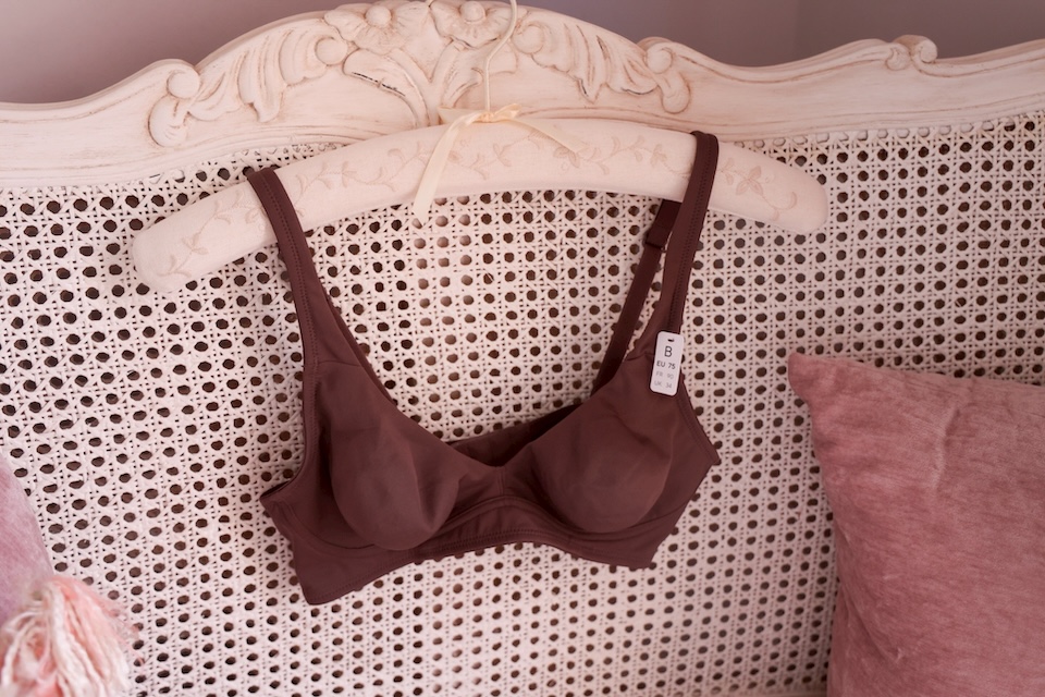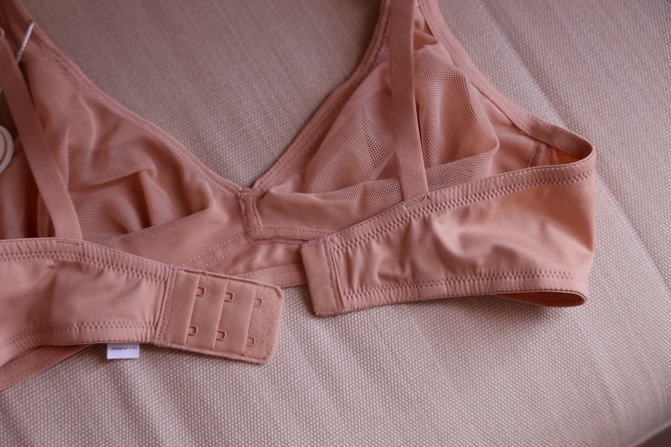 最厲害的是它的包覆剪裁,雖然薄,但穩定度極高!它能把胸部穩穩地固定在位置上,防止側流,翻身也不怕胸型走樣。這不是那種死命硬擠的內衣,而是那種「溫柔地把胸部托住」的安全感。