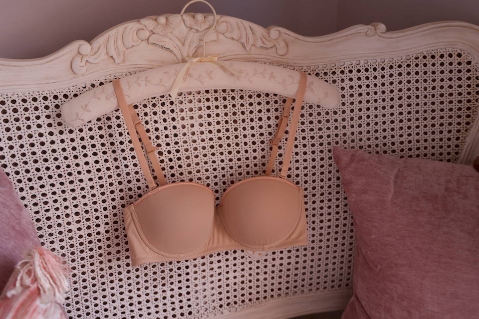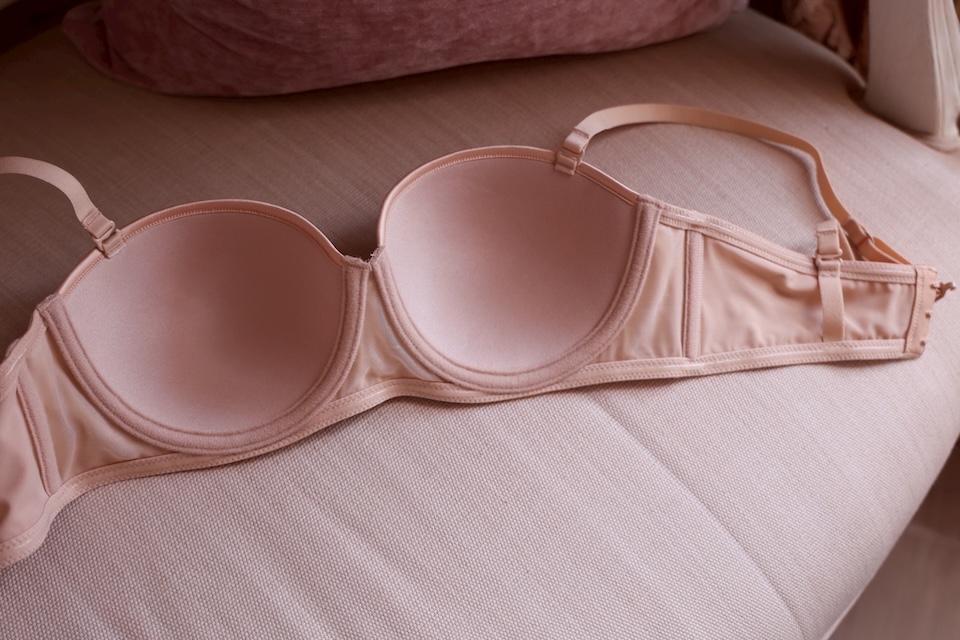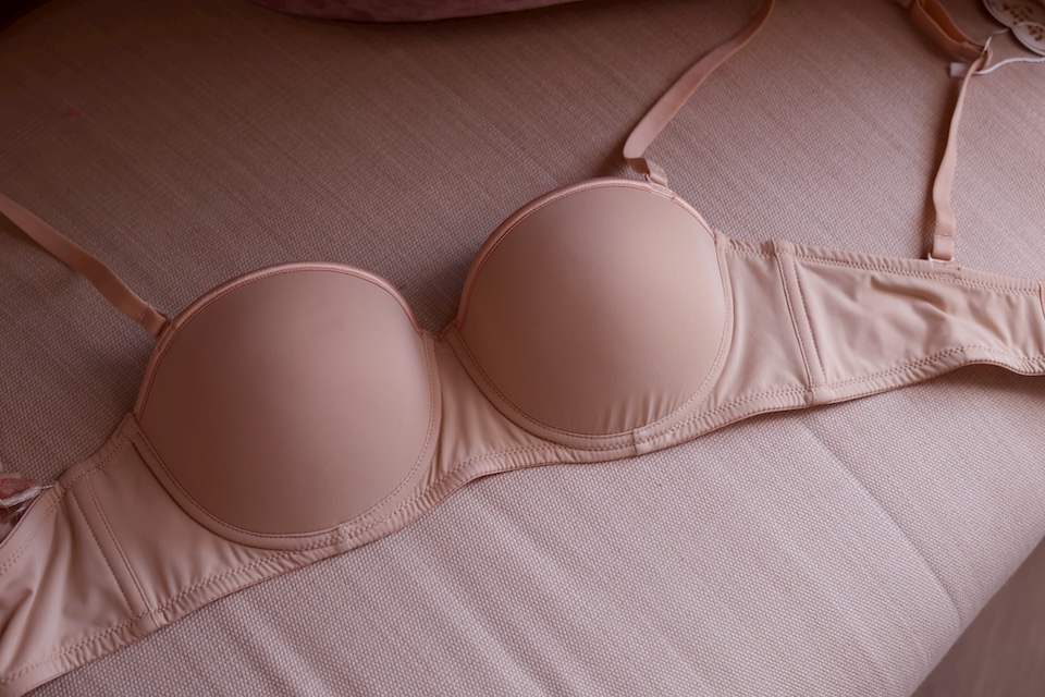 圓潤的平口剪裁,穿在平口洋裝或挖背背心裡面,不會有尷尬的內衣邊緣露出來,胸型看起來是那種自然的飽滿感,非常有質感。