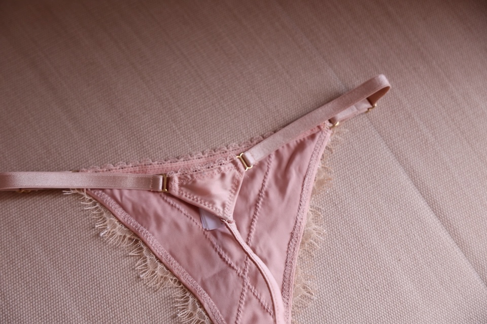 內衣+丁字褲的成套組合!丁字褲兩側的可調節金屬扣環不只精緻,還能依照身型調到最舒服的位置。整套穿起來,肌膚觸感滑順到不行,不管是柔白色還是玫瑰粉,都是那種帶點珍珠光澤感的仙氣色調。這種「法式天花板」等級的組合,成套收才有那種整體的精緻感!