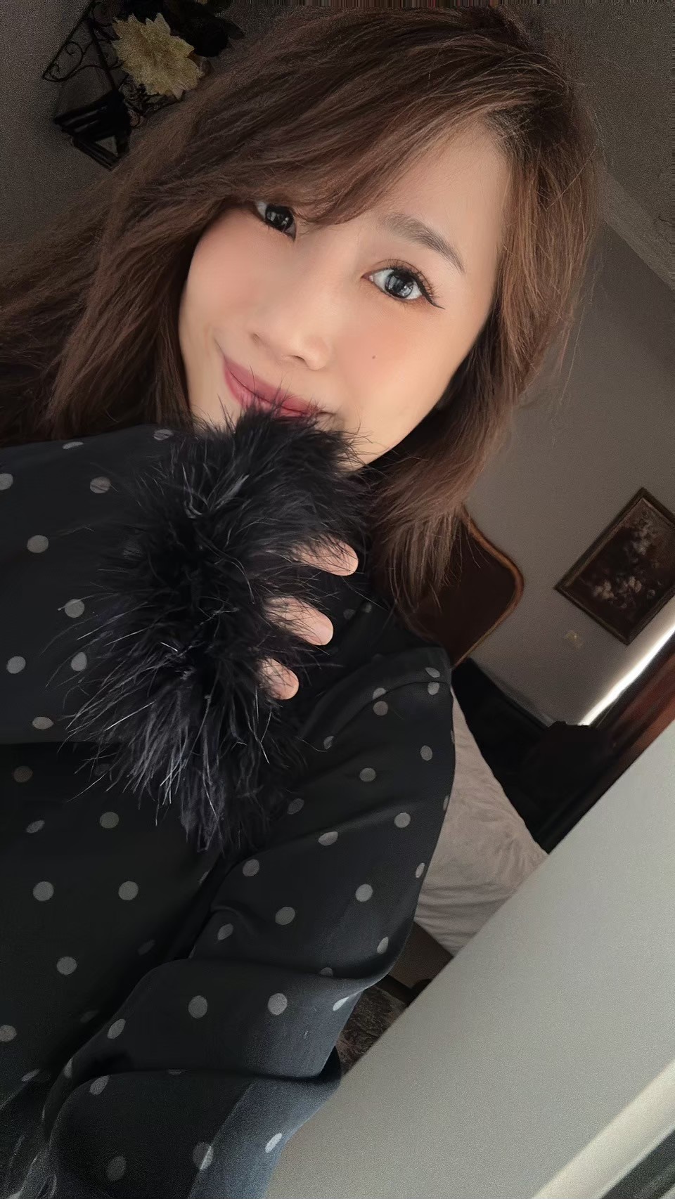星空點點黑:經典顯瘦黑底搭配微光圓點,搭配蓬鬆黑羽毛,氣場全開。