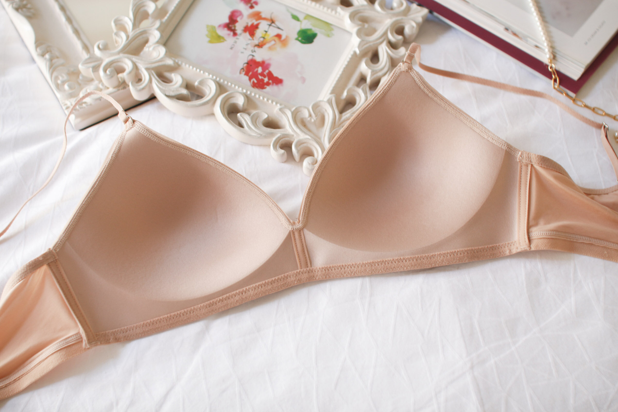 肩帶太粗、內襯太硬、整件不透氣,夏天一穿就悶、熱、胖三合一,胸型又糊又塌,完全沒精神。