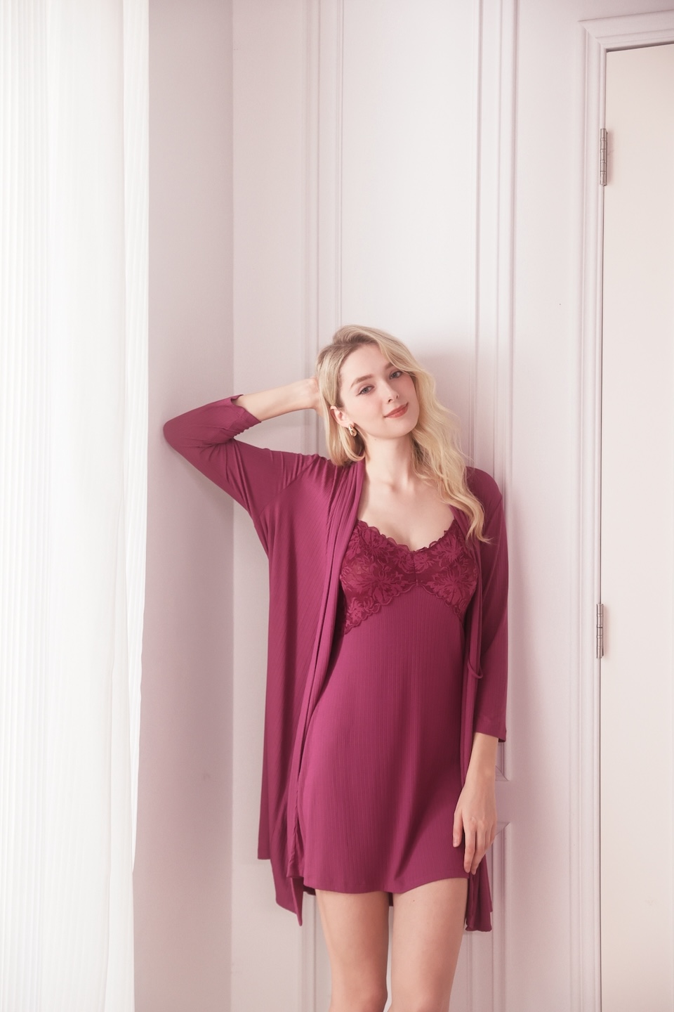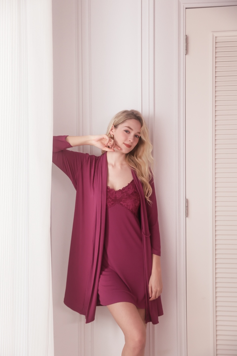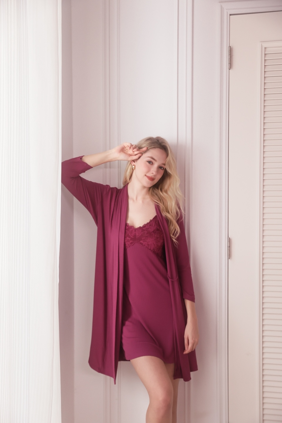 這款睡袍的長度抓得剛剛好,早上起床隨手一披,束起腰帶,那個線條感非常有歐美感。喜歡這種顯白美式風格的姐妹,這件真的不能錯過!