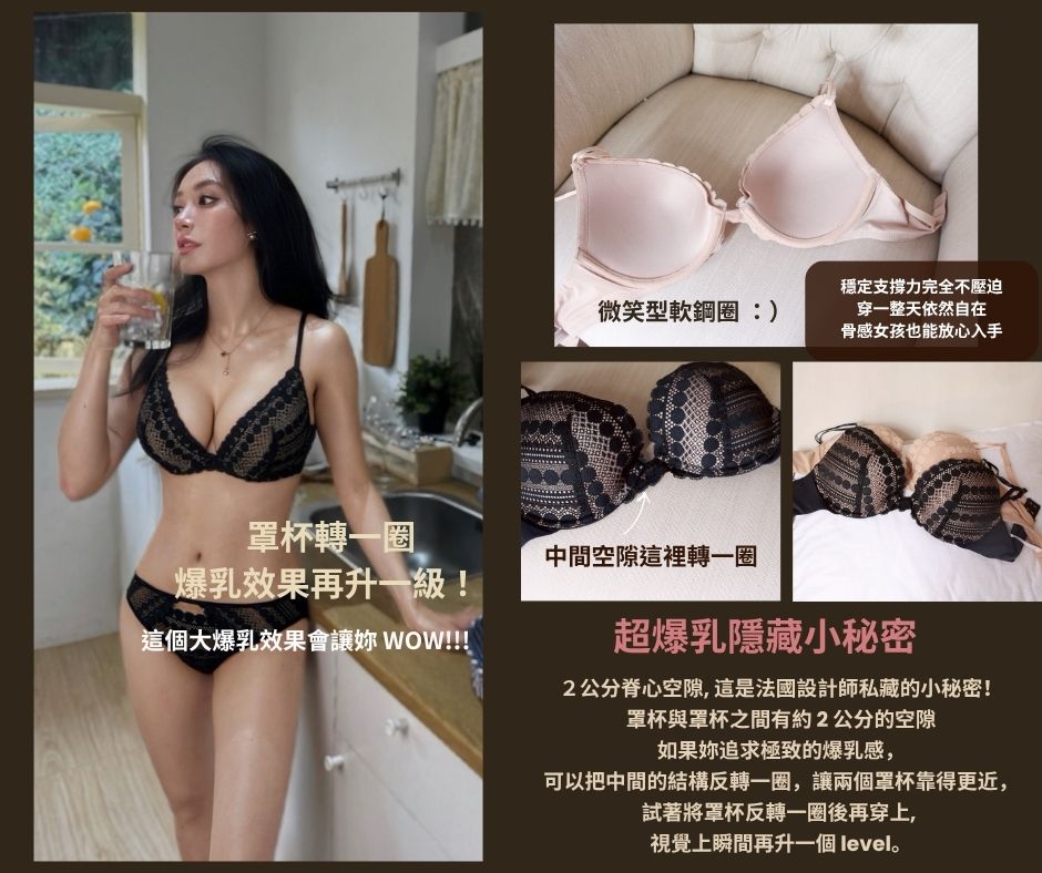 它能將妳最惱人的腋下小副乳完美收納,並由外往內、由下往上將胸部自然推擠到中心。