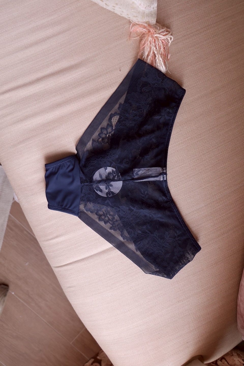 最愛它的蕾絲質感,雖然細緻,但彈性極佳,能很溫柔地貼合妳的臀部曲線,完全不會勒出那一層尷尬的肉肉。