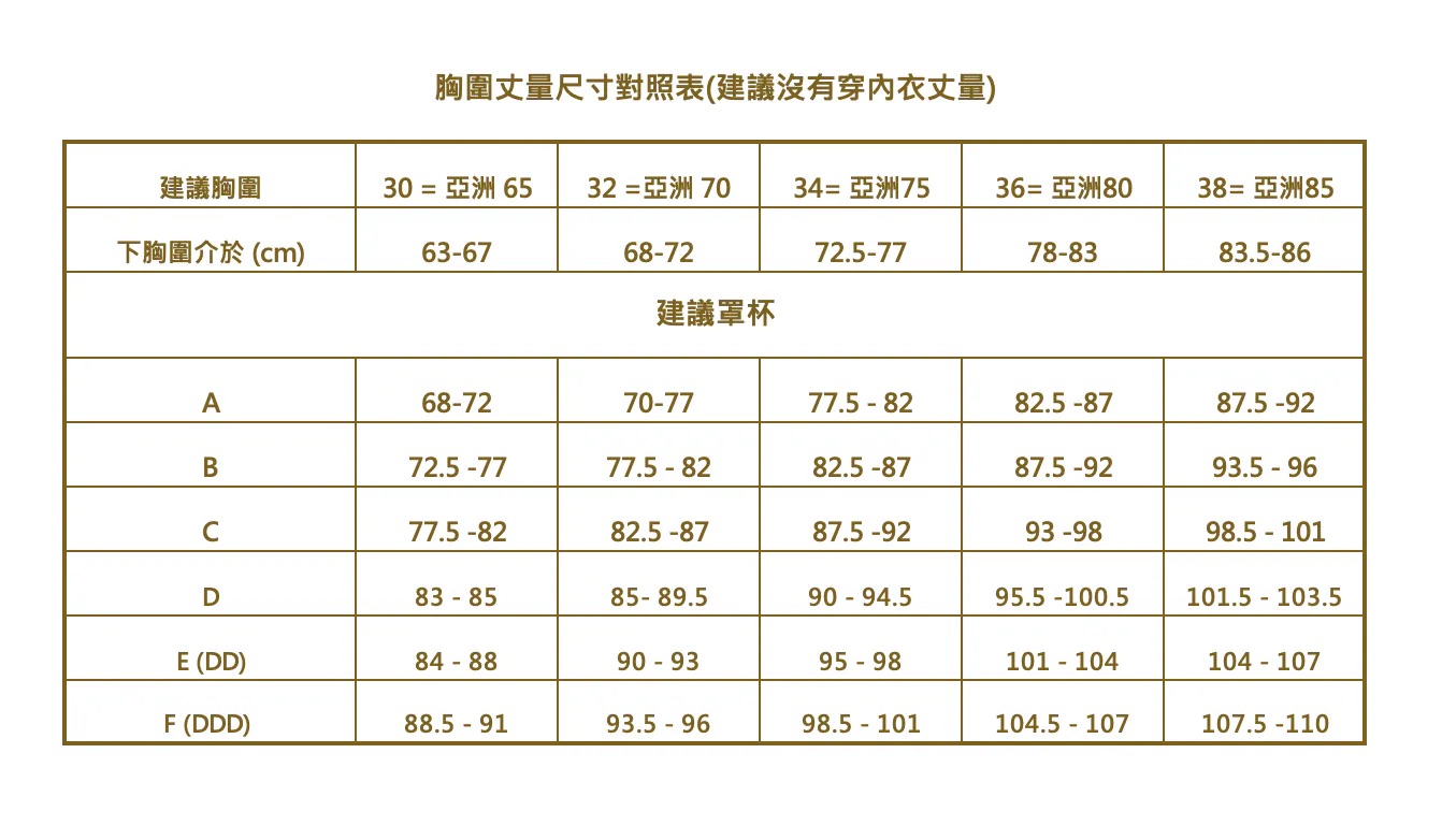 下胸圍的尺寸如果介於兩個尺寸之間, 喜歡舒適感多一點,建議買大一個胸圍.