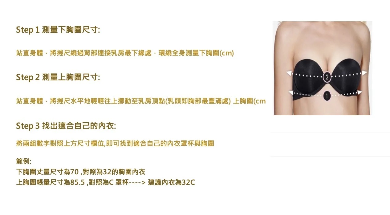 適合B 罩杯以上的胸型,如果胸部介於兩個尺寸中間,建議買小一個罩杯,集中效果更好.