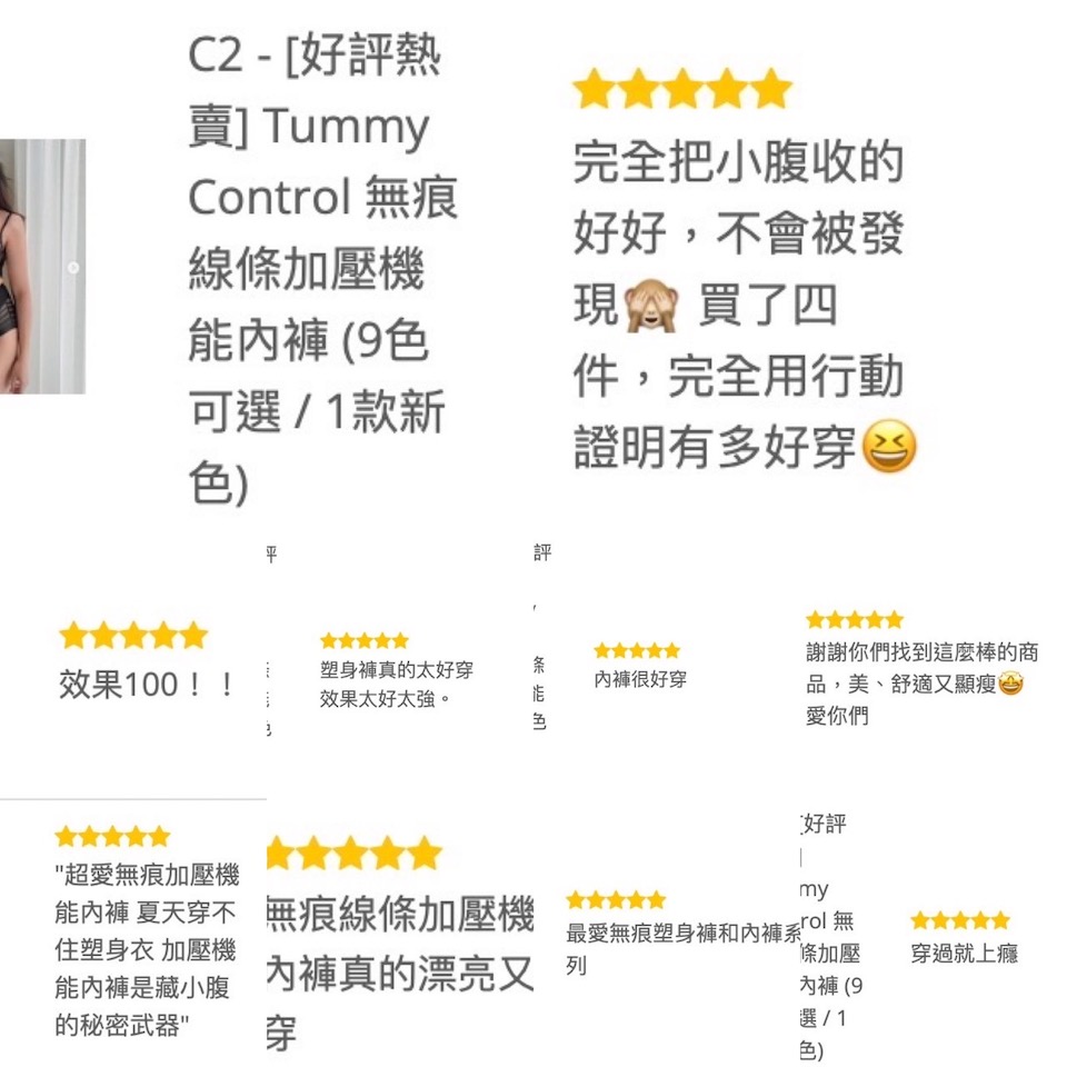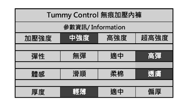 1.中腰設計: 全年度緊身服飾搭配的最佳好夥伴!中腰與全包臀款式的內褲, 上身時腰間的高度剛剛好落在肚臍左右,剛好把惱人的小肚肚完整包覆與收服.