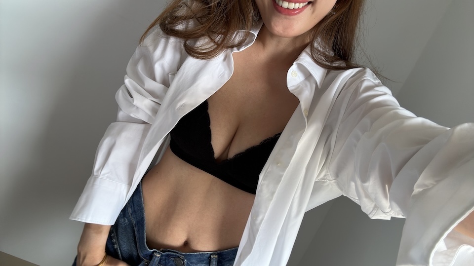 換上無鋼圈小爆乳後,胸型立刻往中間集中、下胸被溫柔托高,