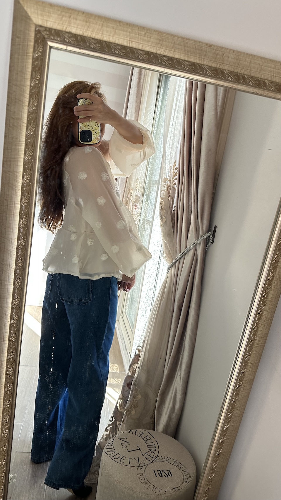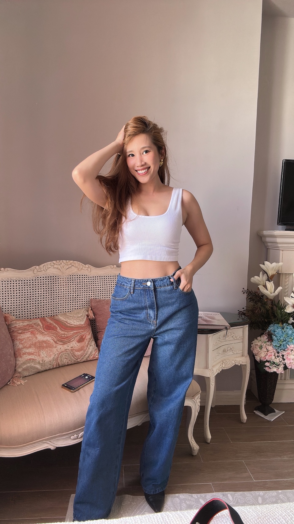 寬褲不貼腿的設計,是這一兩年比較流行的款式. 跟以前的skinny jeans 比起來,穿寬褲的設計更時尚. 寬褲更修飾身型,馬鞍肉,臀圍. 視覺上更顯高又顯瘦.