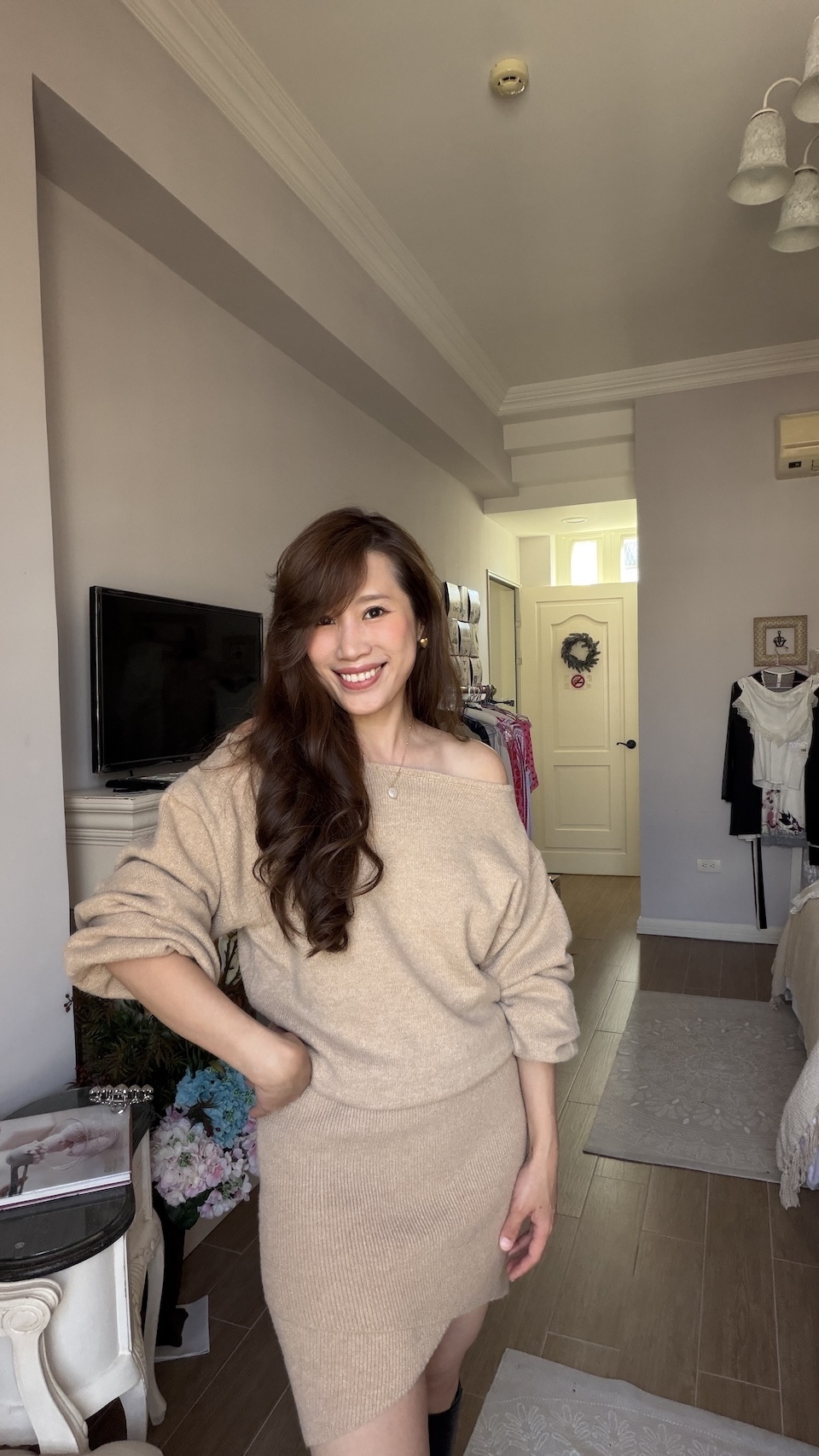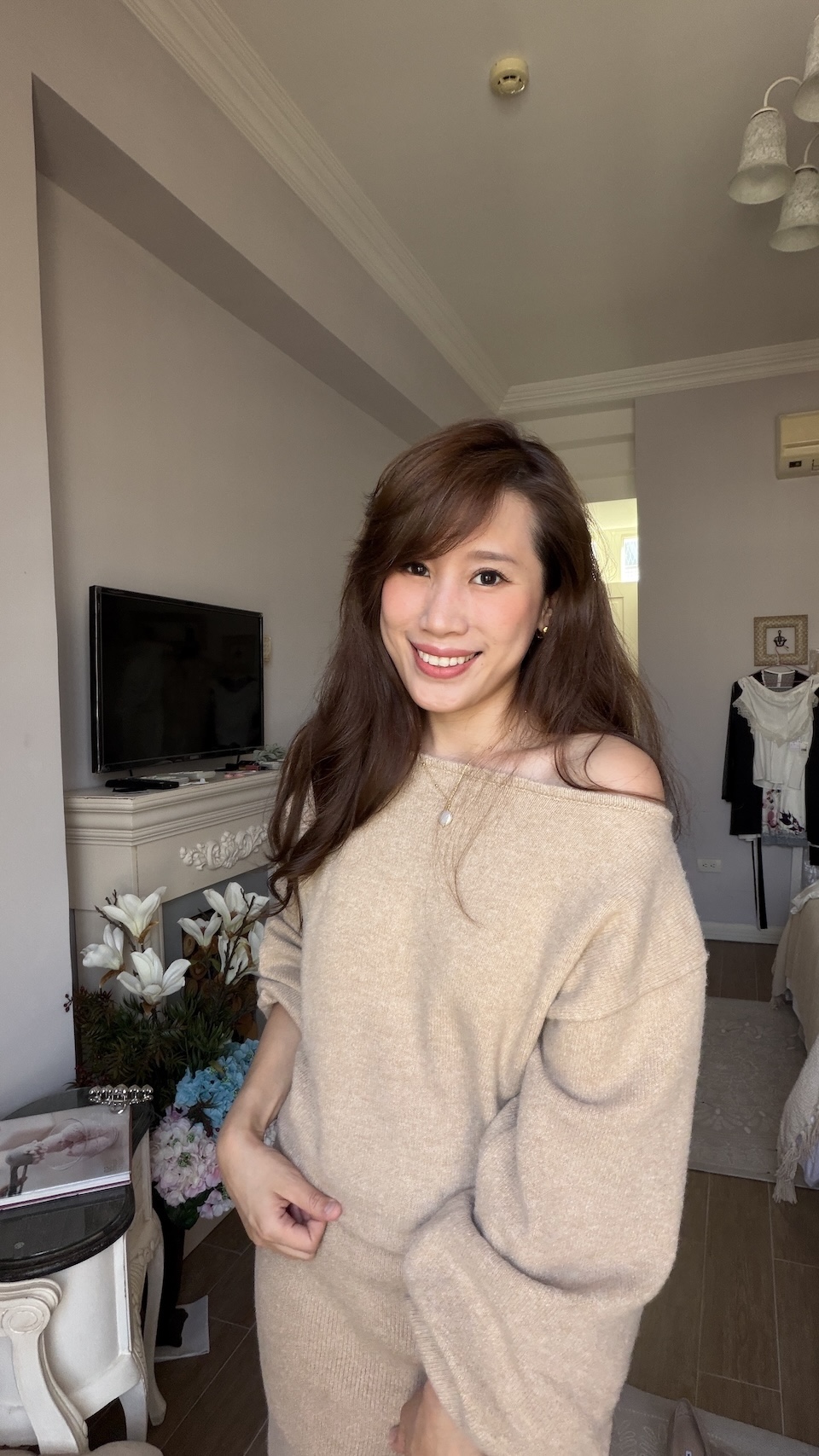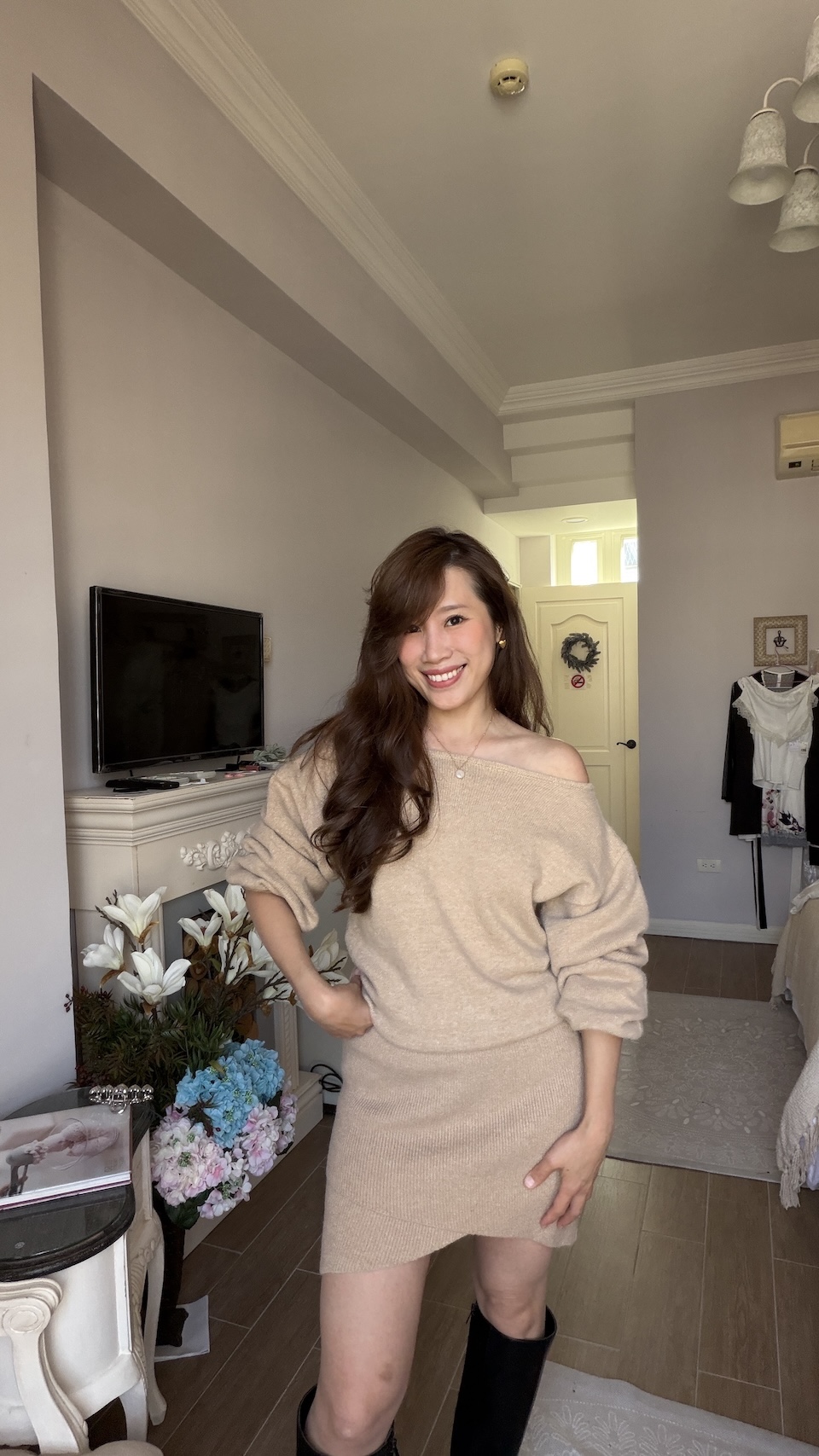 像焦糖拿鐵一樣柔軟慵懶的斜肩洋裝,