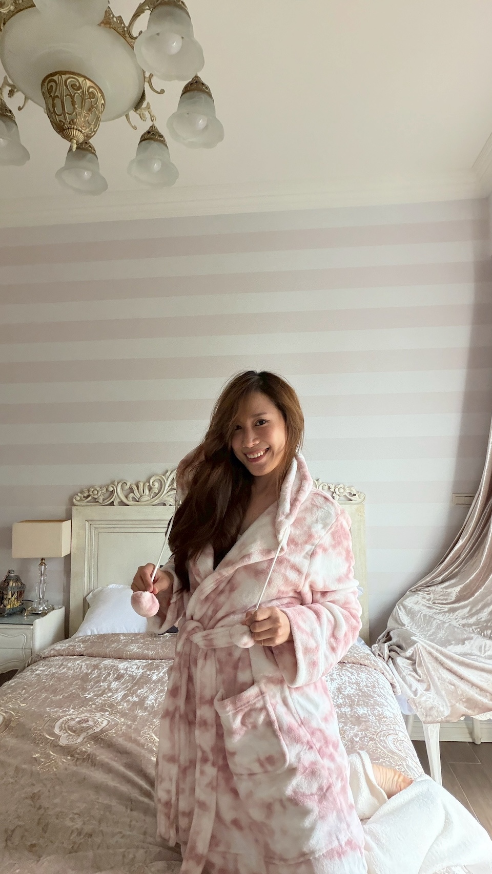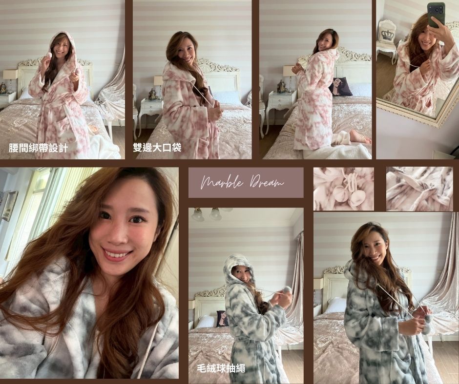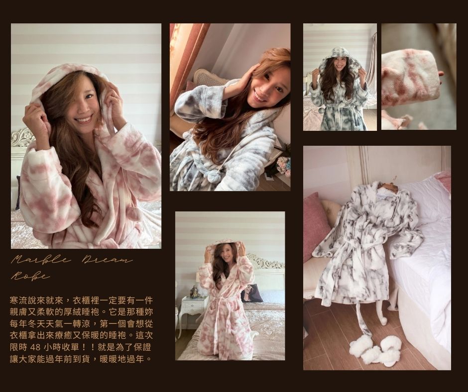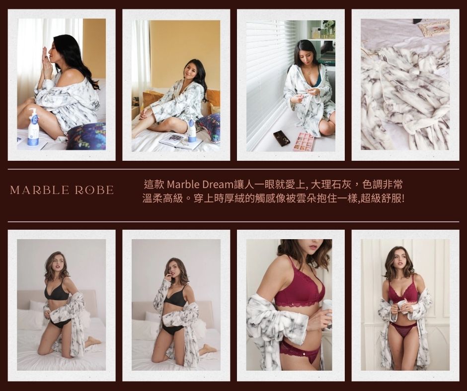 質感Marble print設計: 罕見的大理石紋理,視覺層次豐富,灰色高級、粉色浪漫,穿上立刻充滿貴婦感。每一件睡袍都擁有獨特的視覺層次.