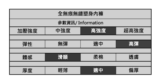 採用最新的高密度柔滑機能高強度加壓布料與技術製成, 無任何外露車線,邊緣細緻熱壓收邊,即使穿上合身貼身的針織洋裝、legging,也不會露出一條線。